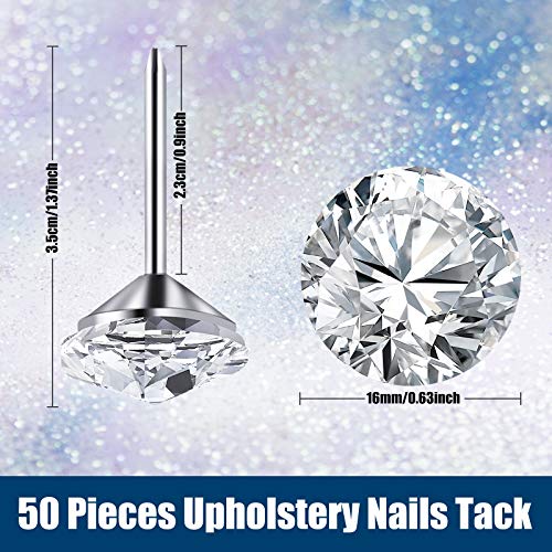 Chiondi per Tappezzeri in Cristallo di Diamante Puntine per Mobili Puntine da Pollice a Testa di Cristallo Decorative Puntine per Tappezzeria Divano Testiere Bacheca di Sughero (50 Pezzi)