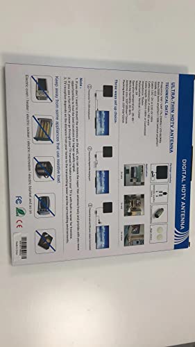 INCLUDE - 1 antenna TV nera ad alta definizione, 1 amplificatore di potenza, 1 cavo coassiale da 5 metri, 1 cavo di alimentazione dell'amplificatore, 1 connettore TV, 1 adattatore, 2 strisce adesive per un posizionamento sicuro e un manuale di istruzioni