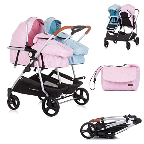 Chipolino, passeggino per fratelli, New Twin Duo Smart, pieghevole, cestino, colorazione:rosa hellblau