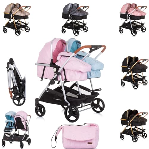 Carrozzina per fratelli dalla nascita, telaio compatto, facilmente ripiegabile con una mano sola, 2 barre anteriori rimovibili separatamente