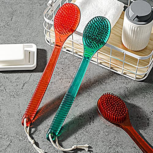 Chirisen Spazzola da bagno con manico lungo, ideale per una pulizia profonda della schiena, peeling, rimozione di cellule morte, per uomini e donne, di colore rosso