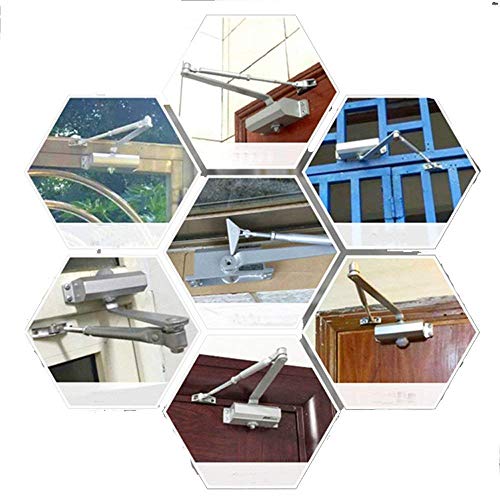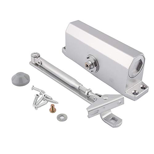 Chiudiporta, Adjustable chiudiporta automatico, chiusura automatica in metallo per la parte superiore di una porta tagliafuoco, Argento, 25-45KG/45-65KG (25-45KG)