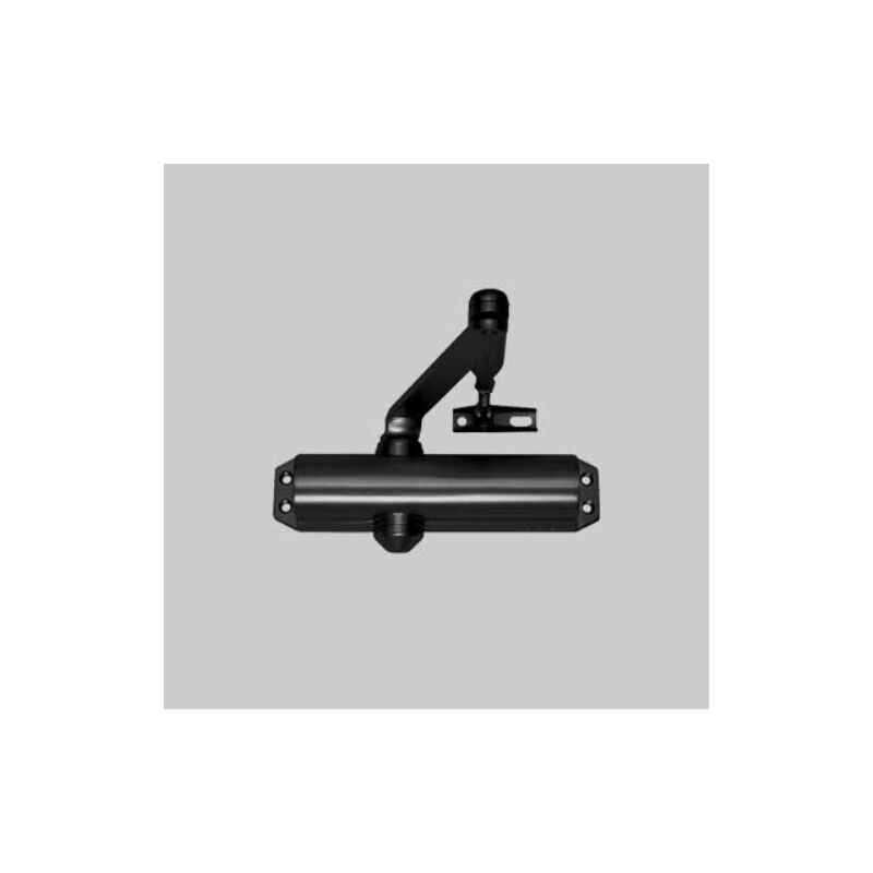 Meccanismo a pignone e cremagliera con braccio a compasso. Velocit... di chiusura, colpo finale e ammortizzazione in apertura regolabili tramite valvole di regolazione. Valvole indipendenti e termodinamiche per garantire una performance costante nelle diverse condizioni di temperatura. Forza variabile di chiusura EN 2/3/4 secondo la norma EN 1154. Per porte a battente fino a 1100 mm di larghezza, utilizzabile su porte destre e sinistre, adatto anche per porte tagliafuoco e tagliafumo. Colore nero RAL9005. Chiudiporta aereo 'dc 120' con fermo ASSA ABLOY Maniglie per esterni e chiudiporta