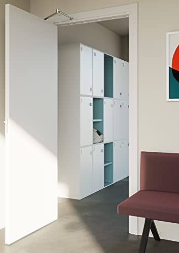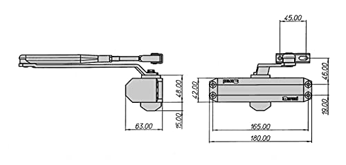 Kit composto da corpo chiudiporta e braccio con fermo, verniciati argento