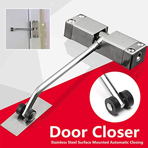 Chiudiporta a molla, in acciaio inox regolabile e automatico, chiudiporta per porta fissa da 20 a 40 kg, chiudiporta automatico, montaggio in superficie, chiusura automatica (argento)