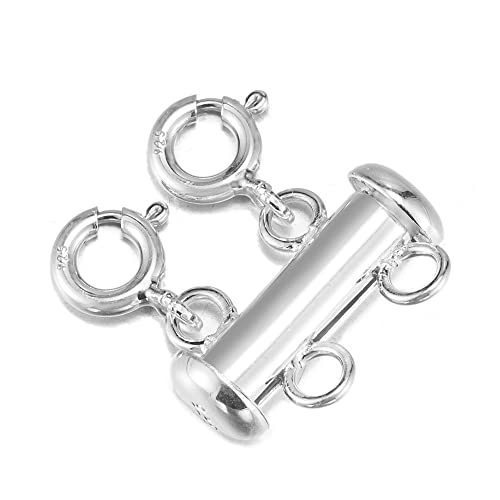 Chiusura districante a strati in argento Sterling 925, 2 3 fili, chiusura a strati per collane, chiusura a tubo distanziatore districante, chiusura a barra (2 fili)