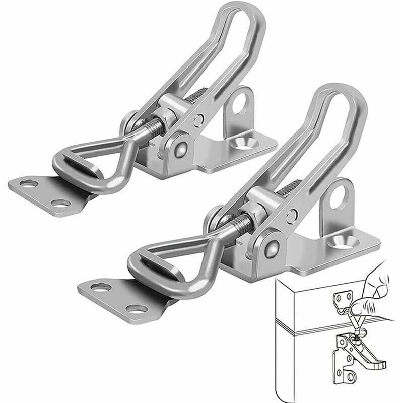 Materiale di alta qualità - : le clip a forcella regolabili sono realizzate in acciaio inossidabile, resistenti, antiruggine, resistenti all'usura, hanno una presa forte, con una fibbia regolabile, molto sicure, sia che tu voglia realizzare una porta o una scatola, puoi facilmente chiuderlo saldamente o liberamente. 【Strumento di fissaggio perfetto】: quando vuoi trovare una sorta di chiusura per pareti divisorie in legno e cassette degli attrezzi, la nostra chiusura con tiretto ti aiuterà, puoi usare il fermo per tenere la scatola di immagazzinaggio leggermente deformata, regolare e riparare. 【Facile da installare】: il morsetto a forcella regolabile ha una struttura molto semplice, devi solo installarlo. #39;