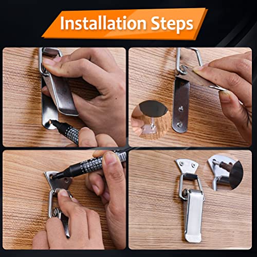【Bello e Durevole】 Il chiusura a leva acciaio inox è trattata con cura, molto liscia e non graffiata. La molla interna è forte e non facile da rompere. La dimensione è comoda da impugnare, comoda per l'installazione e l'applicazione.