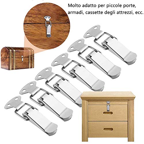 Chiusura a Leva Fermaglio a Molla In 304 Acciaio Inossidabile Hasp Serratura Metallo Chiavistelli Fermaglio Per Cassette Degli Attrezzi, Scatola, Cassetti, Armadi, Argento,6 Pezzi