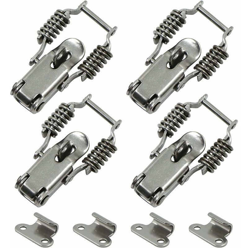Realizzato in acciaio inossidabile 304 con proprietà antiruggine, molto resistente e durevole. Buona fattura, qualità stabile, può resistere a decine di migliaia di aperture e chiusure Grande tensione, struttura compatta, resistente agli urti, uso confortevole e buona resistenza agli urti, design a doppia molla ed eccellente tensione per una presa salda durante il bloccaggio . Può essere fissato saldamente sotto forti vibrazioni e non facile da staccare Ottima fattura, nessuna sbavatura, nessuna ferita alle mani, sicuro da usare Molto facile da installare, solo sulla porta dell'armadio o su una scatola fissa con viti Perfetto per armadio, porta, scatola, borsa o maniglia rotta. Ottimo gadget per casa, ufficio, ristorante, fabbrica, ecc. Caratteristiche del prodotto: Materiale: acciaio inossidabile. Dimensione della leva di rilascio: circa 58x 36 mm. Dimensioni del controgancio: circa 26 x 16 mm. Colore: argento. Contenuto: 4 serrature. diventa molto ricco