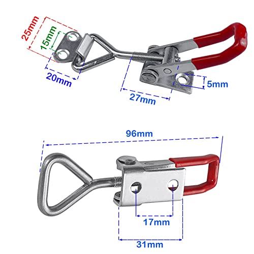 Materiale: il chiusura a leva è realizzato in materiale di ferro zincato con superficie liscia, non facile da arrugginire e resistente. La fibbia rossa è realizzata con un manicotto in gomma PVC antiscivolo e resistente all'usura.