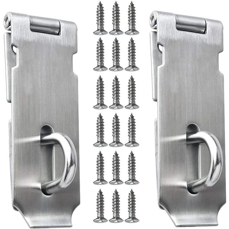 Taglia: Disponibile da 4 pollici e 5 pollici, scegli quello che desideri in base alle tue esigenze Resistente e solido: costruito in solido acciaio inossidabile con corpo ispessito per una maggiore resistenza, durevole e stabile per un uso prolungato Resistente alle intemperie e alla corrosione: preferibilmente realizzato in acciaio inossidabile spessorato, in grado di resistere a lungo termine a vento, sole, pioggia e come nuovo Facile da installare: queste serrature a scatto e con graffette sono complete di tutte le viti di fissaggio necessarie per installare rapidamente e facilmente la serratura su qualsiasi porta Ampia applicazione: ideale per l'uso su porte, capannoni, contenitori di stoccaggio, porte da garage, utilizzata come serratura per cancello, serratura per capannone, generale sicurezza della serratura dell'armadio, ecc.