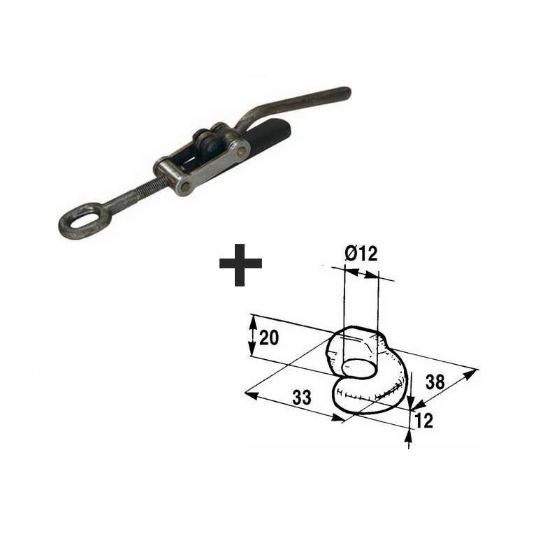 Chiusura ad occhiello tondo regolabile con gancio Chiusura ad occhiello tondo regolabile con gancio Da saldare Fabbrica lorda Chiusura regolabile per un rimorchio agricolo Lunghezza: 115 + 150 mm Gancio rotondo per un fissaggio regolabile Lordo di fabbrica Da saldare