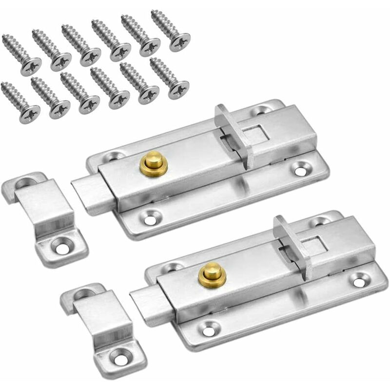 Il diametro del foro di montaggio: 0,16 pollici. [Materiale]: acciaio inossidabile [facile da usare]: Design scorrevole con bassa resistenza, blocco rapido. [Mantieni sicurezza e riservatezza]: La sicurezza della serratura della porta è migliorata rispetto alla vecchia serratura della porta, ed è il doppio del solido come il normale serratura del barile, che può garantire la sicurezza e la privacy. Fornisce ulteriore protezione della sicurezza per il tuo bagno, camera da letto, armadio e altre porte interne. È piccolo, ma può chiudere saldamente la tua porta. Con questo chiavistello di alta qualità, è possibile escludere intrusi nocivi. Istruzioni per l'uso: Stringere leggermente i componenti resilienti alla pressione. Il pacchetto include: 2 Serrature per latch scorrevoli 12 * vite