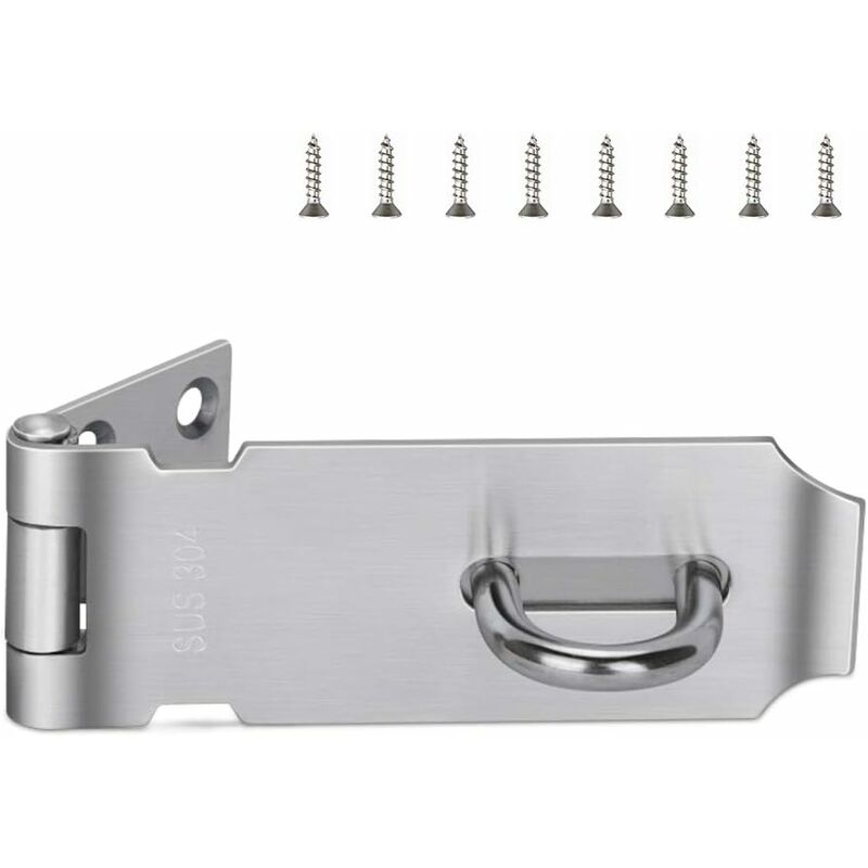 Contenuto della confezione: 1 x Hasp e 8 viti Dimensioni: 145 x 39 x 36 mm (L*P*A), diametro del foro di montaggio: 7 mm, spessore: 2 mm. Diametro del lucchetto (massimo): 19 mm. Serratura di alta qualità: chiusura commerciale in acciaio inossidabile SUS 304 per impieghi gravosi, senza spigoli vivi e resistente. Massima sicurezza: la clip del lucchetto per il lucchetto è facile da fissare con viti, facile da installare. Progettato per chiudere le porte, offre una maggiore sicurezza Multifunzione: il gancio e la clip sono perfetti per porte, capannoni, contenitori, porte da garage, usati come serratura della porta, serratura del capannone, sistema di sicurezza generale, ecc. Descrizione del prodotto Specifiche: Materiale: acciaio inossidabile SUS 304 Dimensioni: 145 mm (lunghezza) x 39 mm (larghezza) x 36 mm (altezza) Peso: 180 g La confezione include: 1x fermaglio e chiusura a vite p> - Costruito in acciaio inossidabile SUS 304, che garantisce qualità e longevità in caso di pioggia