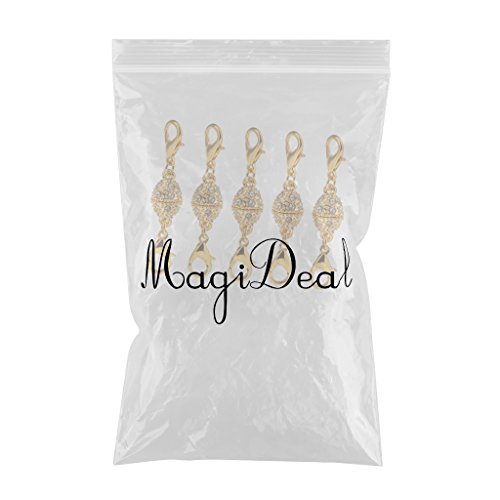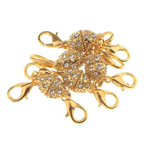 5 chiusure magnetiche MagiGeal ovali, con cristalli, moschettone di fissaggio ai due lati, gancio di chiusura completo per gioielli, lucido, con strass