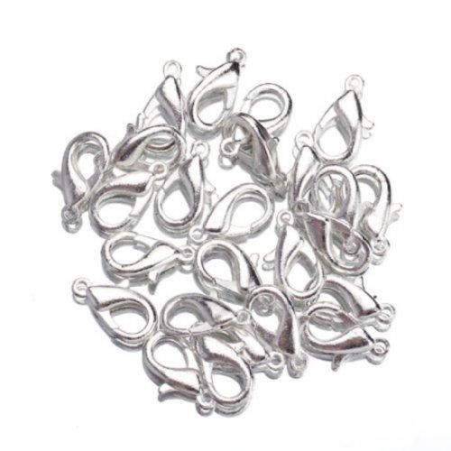 SET DI 30 CHIUSURE A MOSCHETTONE, IN METALLO, COLORE: ARGENTO CHIARO - 12 x 6 mm - CREATION BIJOUX PERLE
