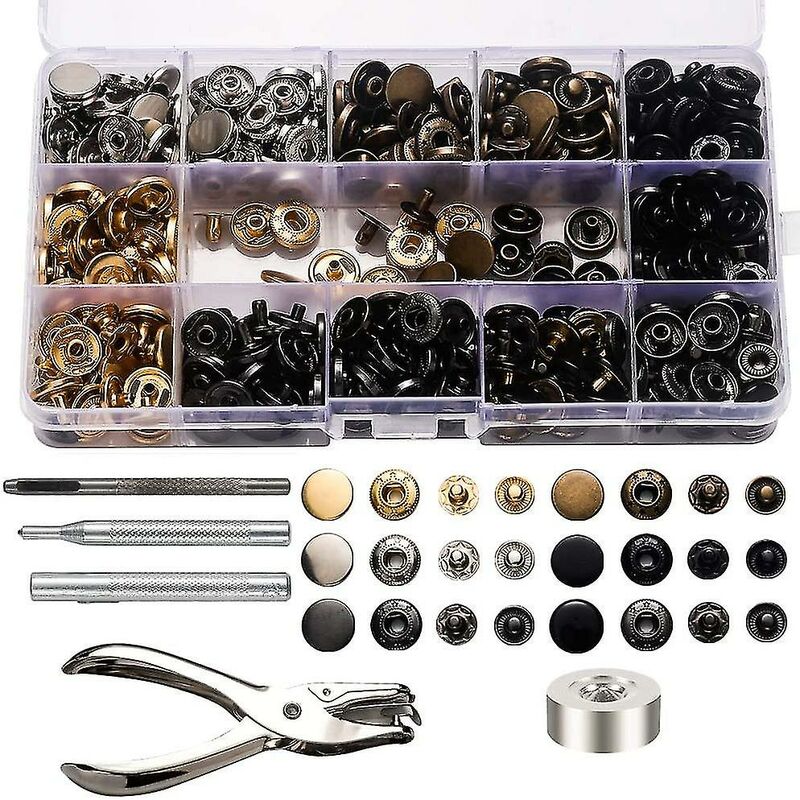 Kit chiusure a scatto I bottoni sono costituiti da una serie di chiusure a scatto in metallo, comprensive di due coperchi, un gambo e una presa, con un diametro di 12,5 mm;