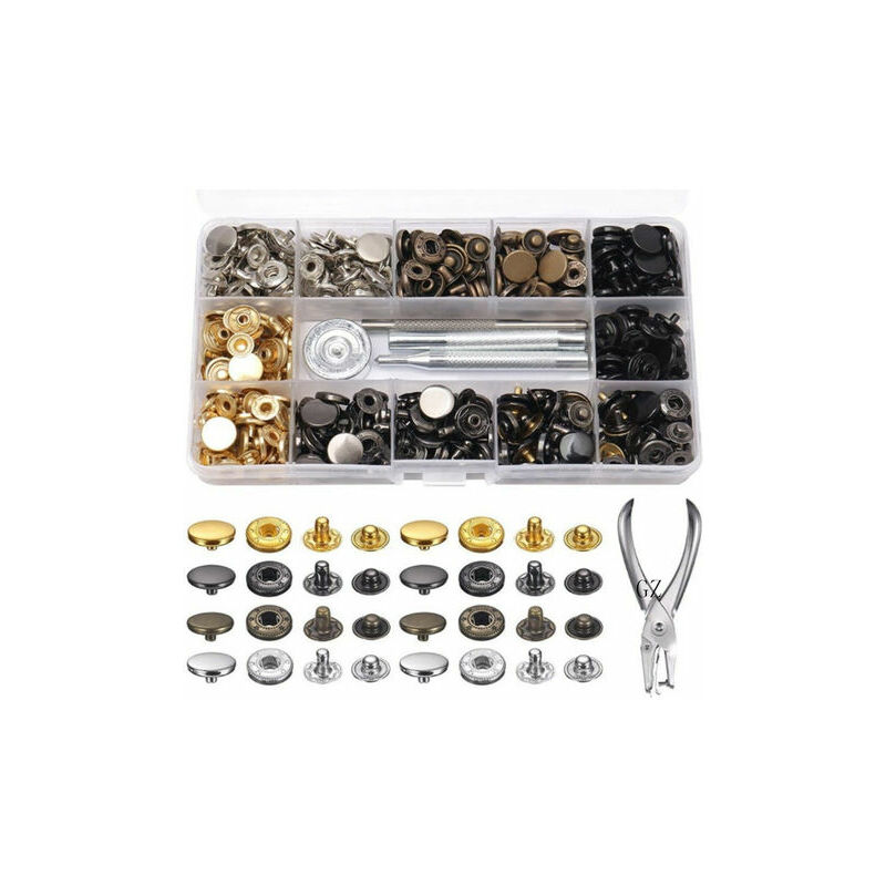Kit Snaps - I pulsanti sono costituiti da una serie di bottoni automatici in metallo, inclusi due coperchi, un perno e una presa, con un diametro di 12,5 mm;