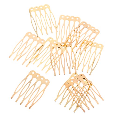 Chiwanji Confezione da 10 Pettini per Capelli di da Sposa Velo da Sposa Pettini, Dorato 2,7 cm