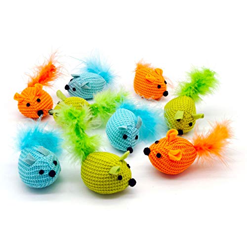 Chiwava 10,9 cm fat topi in maglia con gattino Feather Catnip Cat Toy mouse cattura Play colori assortiti