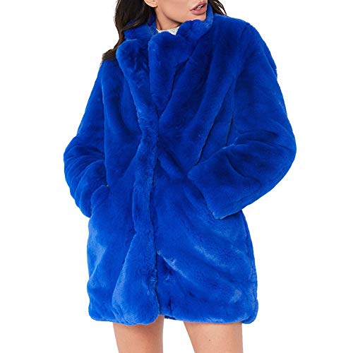 CHIYEEE Donna Invernali Lungo Trench Capispalla Elegante Maniche Lunghe Autunno Cappotto di Peluche Blu XXXL