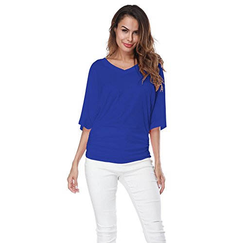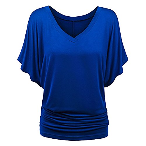 CHIYEEE Maglia Maglietta Donna Maniche Corte Taglie Forti Ragazza Top Donna Estate Shirt Blu 5XL
