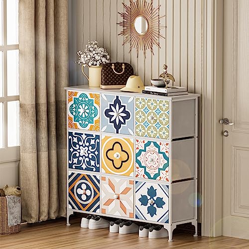 Chleby Cassettiera in tessuto Armadio con 9 cassetti Cassettiera Armadio in tessuto con un bel motivo per soggiorno, camera da letto, cameretta dei bambini toni freddi