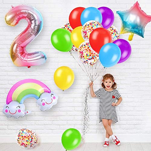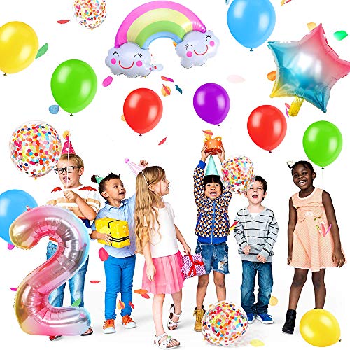 CHMMY Foil Palloncini Numeri 2 Arcobaleno Compleanno Decorazioni Palloncini 2 Rosa Anno Gigante Arcobaleno Palloncini di Coriandoli di Colore Feste Decorazione di Compleanno Palloncino
