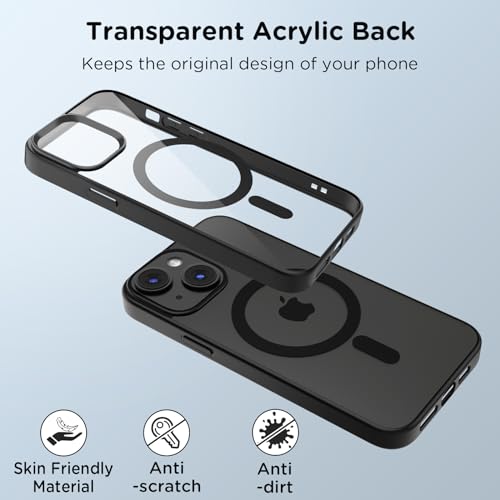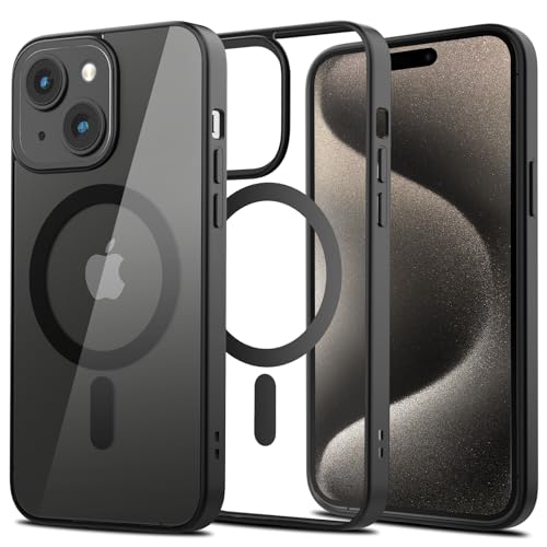 Chnano Cover per iPhone 15 Compatibile con MagSafe, Custodia iPhone 15 Cover Magnetica Protettiva Antiurto Militare Anti-Ingiallimento TPU Bordo Morbido iPhone 15 Cover Trasparente Nero