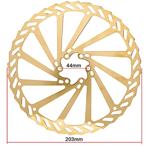 Specifiche: dischi per bicicletta 160 mm/180 mm/203 mm. Interasse: 44 mm Spessore: 2 mm. Colore: Multicolore/Oro/Blu, 2 pezzi + 15 viti.