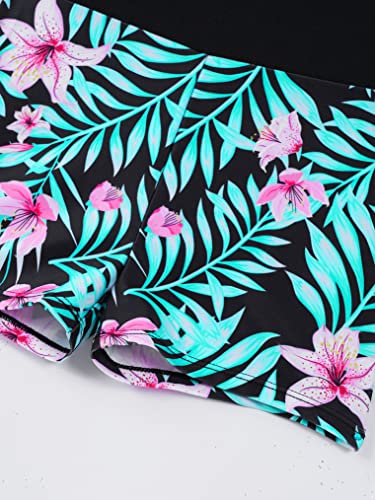 Choomomo Costume Intero da Bagno Costumi da Mare Monokini Tankini da Spiaggia con Stampa Floreale Ragazze Tuta Abito Estivo da Nuoto Piscina 3-14 Anni Nero 7-8 Anni