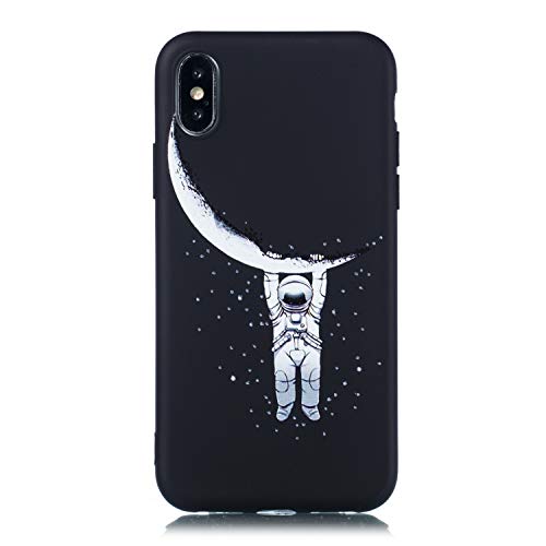 ChoosEU Compatibile con 3X Cover iPhone X/iPhone XS Silicone Disegni Fiore Nero Belle Morbido Antiurto Gomma Custodia Slim Bumper Case Chiaro Protezione Ultra Sottile - Luna, Astronauta