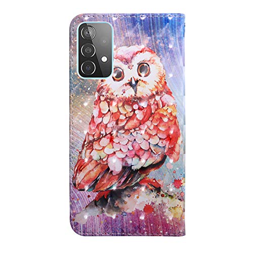 ChoosEU Compatibile con Cover Samsung Galaxy A52 5G / A52 4G / A52S 5G Pelle Flip Custodia Libro Pelle Silicone Morbide Disegni Colorate Case Antiurto Protettiva Supporto Stand Porta Carte - Gufo