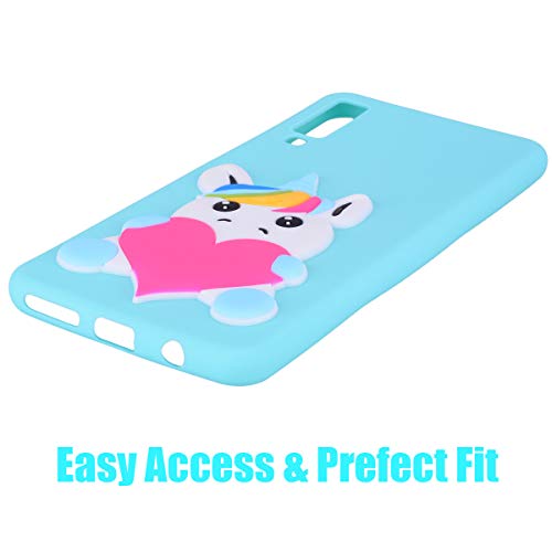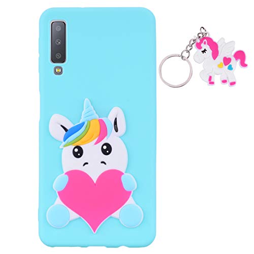 ChoosEU Cover Compatibile con Samsung Galaxy A7 2018 Silicone Disegni 3D Unicorno Belle Colorate TPU Morbido Antiurto Gomma Custodia Slim Bumper Case Ultra Sottile - Unicorno Verde + Portachiavi