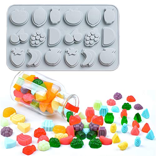 Chostky - Stampi in silicone per caramelle gommose con contagocce, 9 pezzi a forma di frutta per cubetti di ghiaccio, muffin, biscotti, torte, dolci, caramelle, gelatina, cioccolato, ciambelle praline