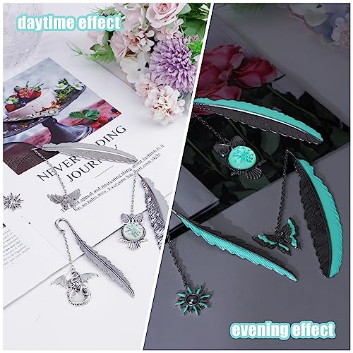Chostky 6 Pz Vintage Piuma Metallo Segnalibro, Glow nel buio 3D Segnalibri luminosi, Segnalibri unici Cool Segnalibri per bambini Studenti Regali di compleanno Libro Amanti Insegnanti Reader