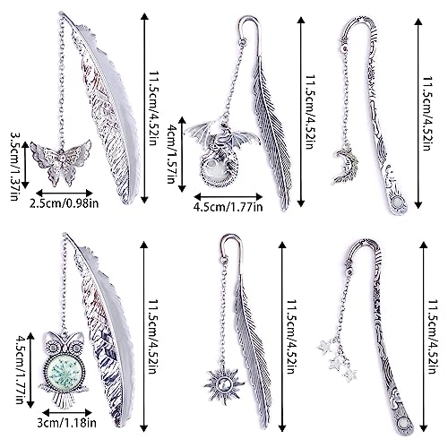 ◆ Set di 6: Riceverai 6 segnalibri vintage in metallo con diversi ciondoli, tra cui gufo, farfalla, drago, luna, stella e sole. Puoi usare i segnalibri cool in diversi libri, uno strumento pratico per aiutarti a registrare i tuoi progressi di lettura, e una quantità sufficiente soddisferà le tue esigenze di uso quotidiano.