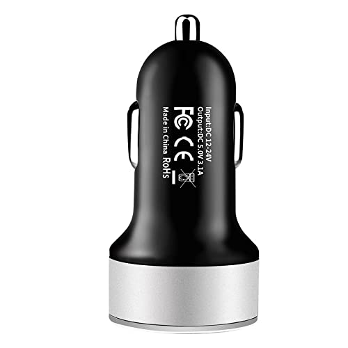 CHOULI Caricabatteria da Auto Doppio USB 3.1A con Caricabatterie per Auto Universale per Telefono Cellulare con Display a LED (Argento)