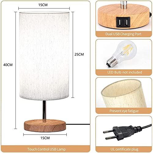 Chowchee Lampada da Comodino, 3 Temperature di Colore Controllo Touch, 2 Porte USB Ricarica, E27, per Soggiorno, Camera da letto, Lampadina non inclusa (2 pièces)