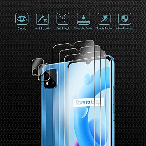 CHRINECY [3+2 Pezzi] Compatibile con Realme C11 2021 Pellicola Protettiva e 2 Pezzi Pellicola Fotocamera,Durezza 9H,Senza Bolle,Anti-Impronte,Anti Graffio,Vetro Temperato,2.5D,per Realme C11 2021