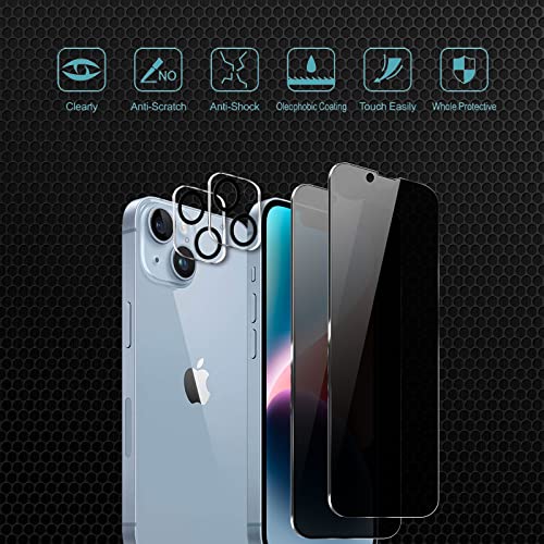 CHRINECY [4 Pezzi] Privacy Pellicola Protettiva per iPhone 14, 2 Pack Protezione Schermo Pellicola e 2 Pack Fotocamera Protezione Schermo Pellicola, Anti Spy in Vetro Temperato Flim