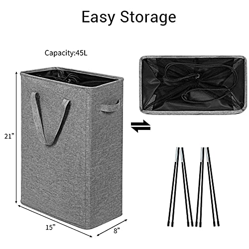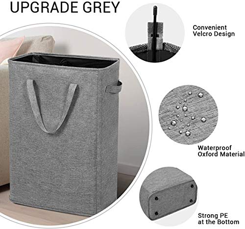 Chrislley Cesto Portabiancheria Piccolo Secchi per la Biancheria Pieghevole Cesta Portabiancheria Salvaspazio Cesti Portabiancheria Stretto con Manici - 45L,grigio screziato