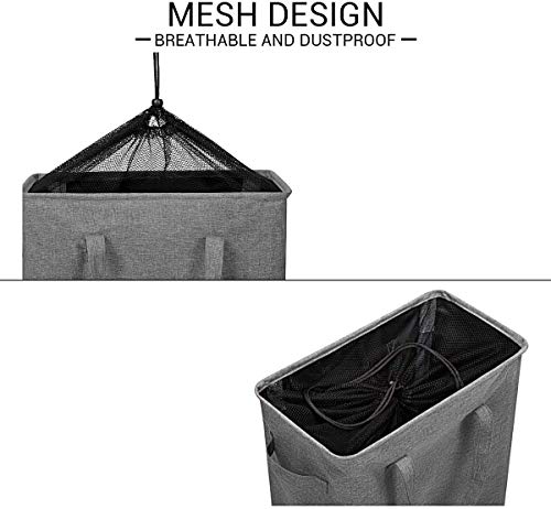 Design resistente e a rete: il design del quadro (telaio in filo e telaio in ferro integrato) rende il cesto più stabile, stabile e durevole. Design a rete per evitare che la polvere entri e mantenere l'interno dei vestiti puliti e ordinati.