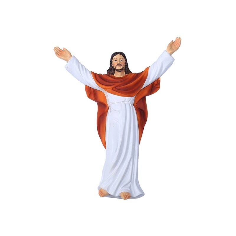 Statuetta di gesù cristiano resina dipinta a mano figura cattolica artigianato ornamento per la casa chiesa camera da letto porta decorazione da appendere alla parete 100% nuovo di zecca e di alta qualità Caratteristiche: Materiale: è realizzato in materiale resina, non è tossico e durevole.Design unico: con le braccia rialzate in cielo è veramente ispiratore e impressionante, e evocherà un ricordo e ideolations. Covato nelle chiese e nelle case di tutto il mondo, questo simbolo sacro della religione ci ricorda il massimo sacrificismo e l'amore di cristo.Regalo religioso: la statua di gesù dal design unico è un regalo meraviglioso per ogni occasione, specialmente i sacramenti del battesimo, il primo matrimonio o gli anniversari. È una dichiarazione fedele di fede religiosa. Decorazione religiosa per la tua casa, la chiesa o il posto di lavoro e un'aggiunta reversibile a qualsiasi stanza.Opere d'arte Delicate: la pittura delicata e i dettagli intricati rendono questo pezzo un ottimo