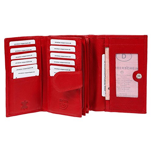 Christian Wippermann, portafoglio da donna in pelle, con certificazione TÜV per protezione RFID, con confezione regalo Rosso Rot 15,5 x 9,5 x 4,0 cm