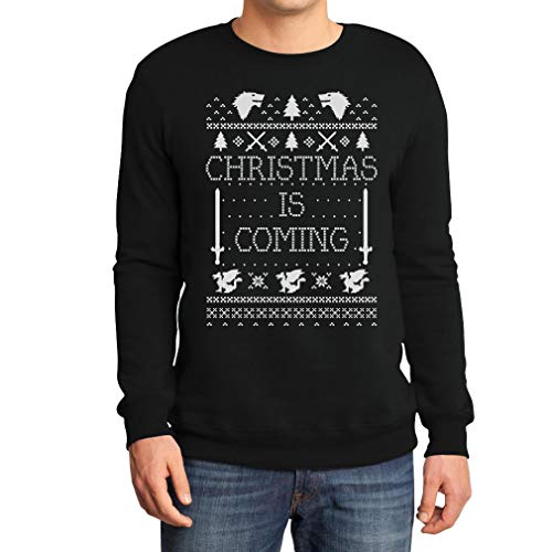 Christmas Is Coming Ugly Christmas Felpa/Maglione da Uomo Small Nero