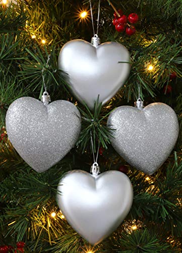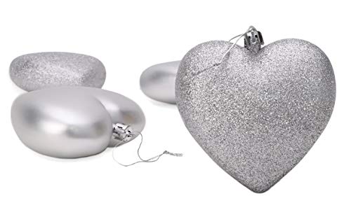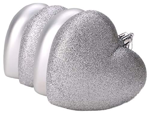 Christmas Concepts Bauletti a Forma di Cuore da 4-100 mm - Design Opaco e Glitterato - Decorazione Natalizia (Argento)