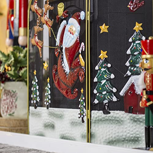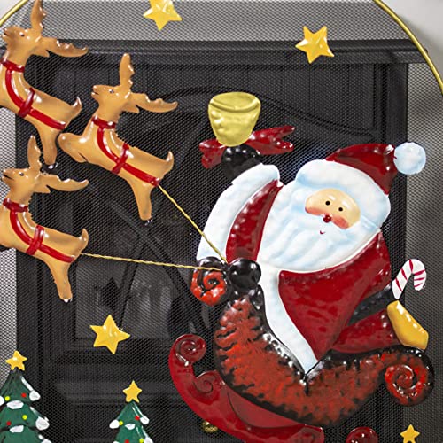 The Christmas Workshop, Grata Protettiva per caminetto, Motivo Babbo Natale con Slitta e Pupazzo di Neve, 63 cm
