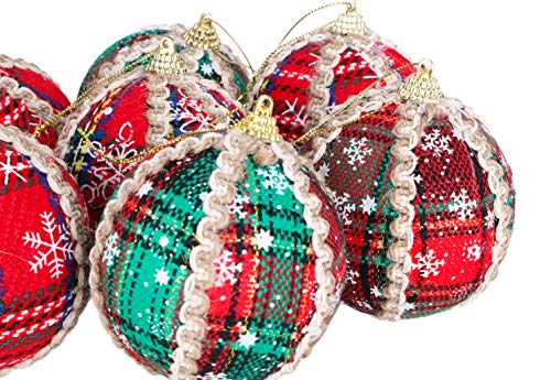 Christmasshop Set di 12 palline di Natale di Tartan rosso con decorazione crema e nero